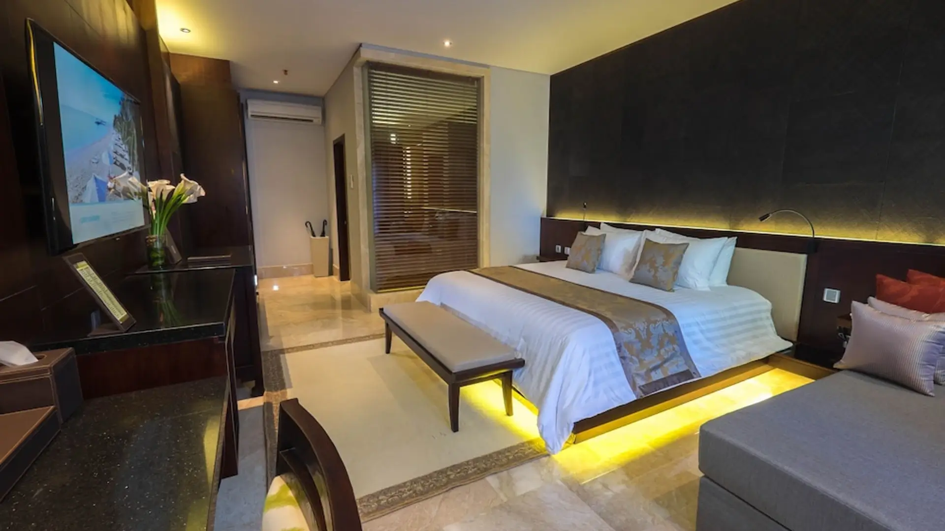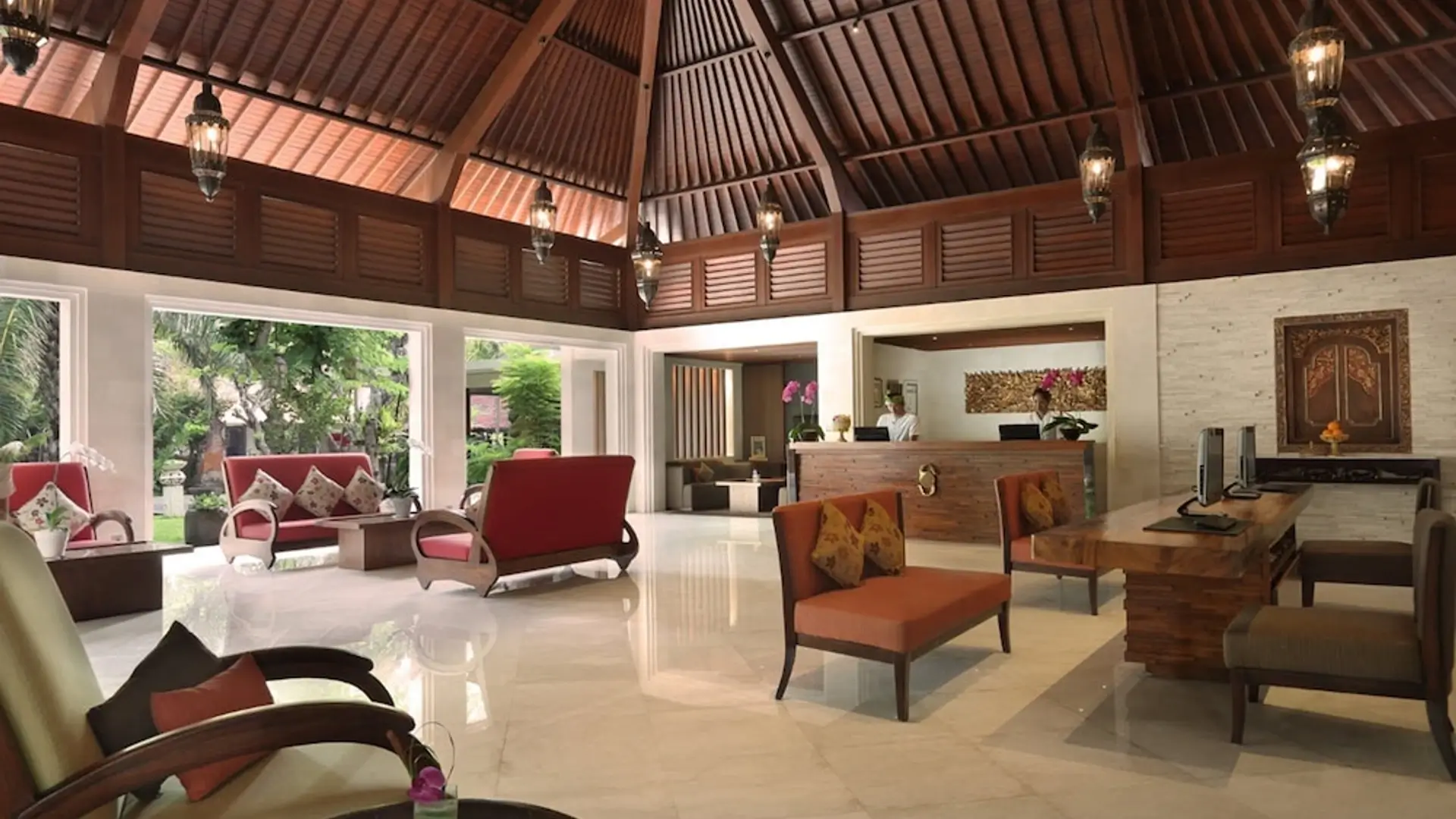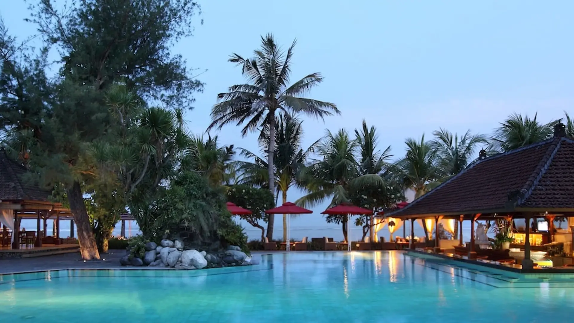 A classic Bali beachfront stay on Sanur’s serene sunrise coast, Griya Santrian blends traditional Balinese warmth with lush tropical gardens – an easy, restful base between appointments and gentle beach walks.