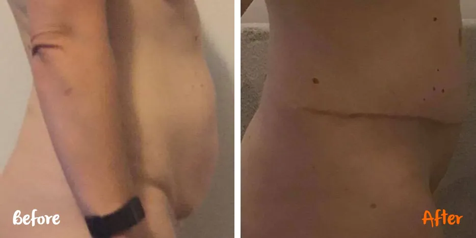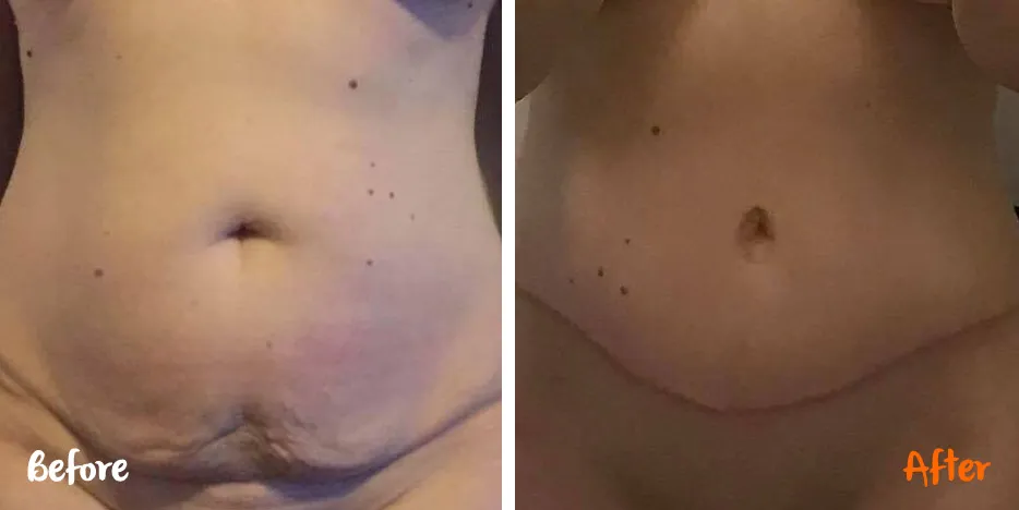 At 42 years of age I lost 17kg and took up kickboxing but no matter how hard I trained I couldn’t lose the tummy or skin.